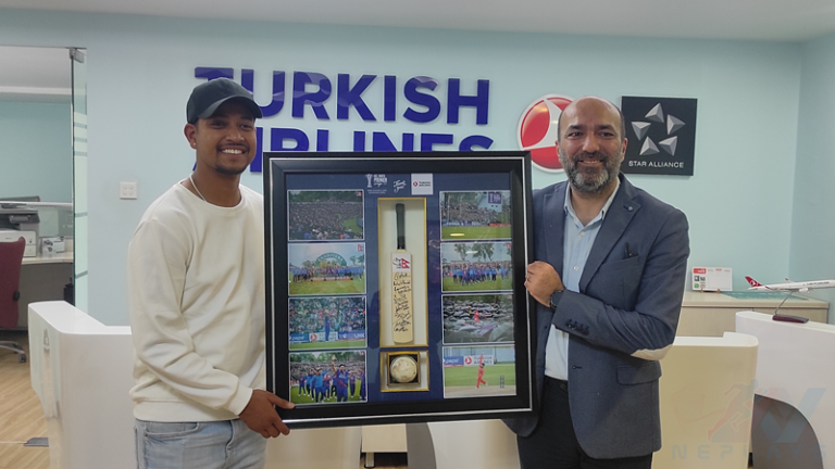 काठमाडौं । नेपाली क्रिकेट सन्दीप लामिछानेलाई टर्किस एयरलाइन्सले सम्मान गरेको छ । काठमाडौंमा आयोजित कार्यक्रममा टर्किस एयरलाइन्सका जनरल म्यानेजर सेरकन बसरले सन्दीपलाई सम्मान गरेका हुन् ।