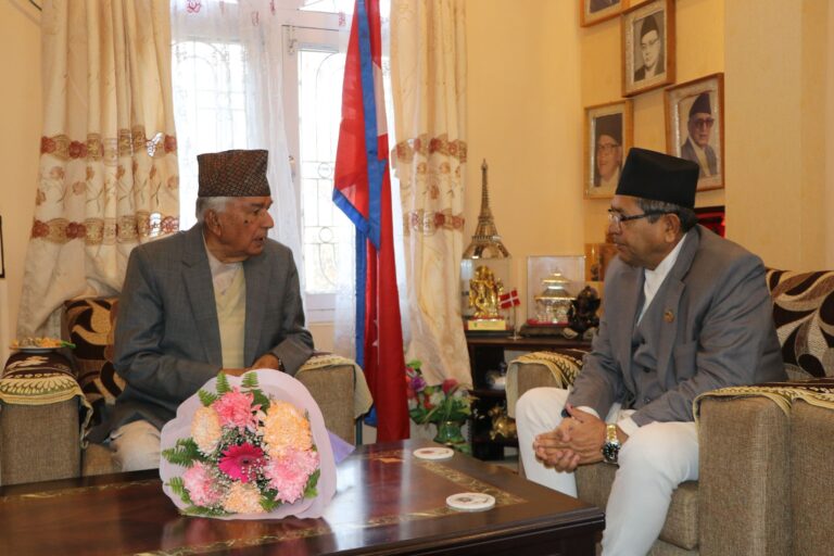 राष्ट्रपतिको निजी निवास बोहोराटारमा शुक्रबार बिहान भएको भेटमा सभामुखले नवनिर्वाचित राष्ट्रपति पौडेललाई बधाई तथा सफल कार्यकालको शुभकामना व्यक्त गरेका छन ।
