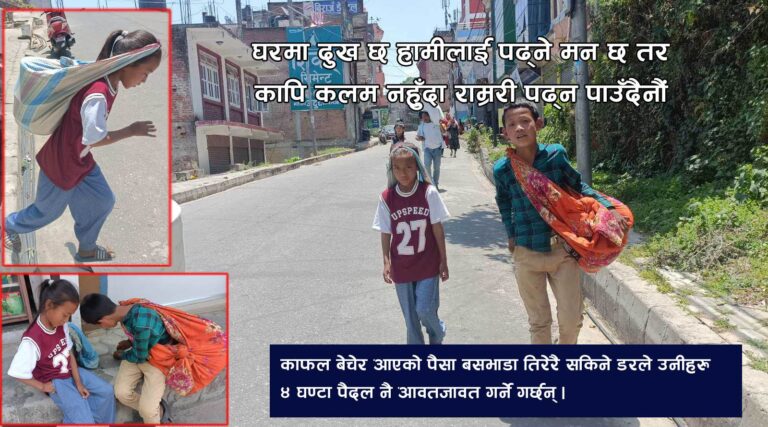 ‘घरमा दुख छ हामीलाई पढ्ने मन छ तर कापि कलम नहुँदा राम्ररी पढ्न पाउँदैनौं, तामाङले दुखेसो पोखे, ‘के गर्नु बुबाआमाको राम्रो कमाई छैन।’ हुन पनि तामाङको बुबाआमाको भरपर्दाे आम्दानीको स्रोत छैन पनि । खेतीपातीमा निर्भर उनीहरुलाई त्यसको आम्दानीबाट ६ महिना खान पनि पुग्दैन । त्यसैले पनि सेलाङ र सिम्पालकाभ्रेका बालबालिकाहरु अरु दिन विद्यालय जाने र शनिबार काफल बेच्न बजार झर्ने गर्दछन् ।