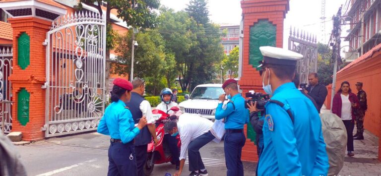 सतर्कता केन्द्रले सिंहदरबारबाट बाहिरिने कर्मचारीहरुको परिचय पत्र हेर्दै उनीहरुको नाम, कार्यालय, कर्मचारी संकेत नम्बर र बाहिर जानुको कारणसमेतको विवरण टिपोट गरेको छ ।