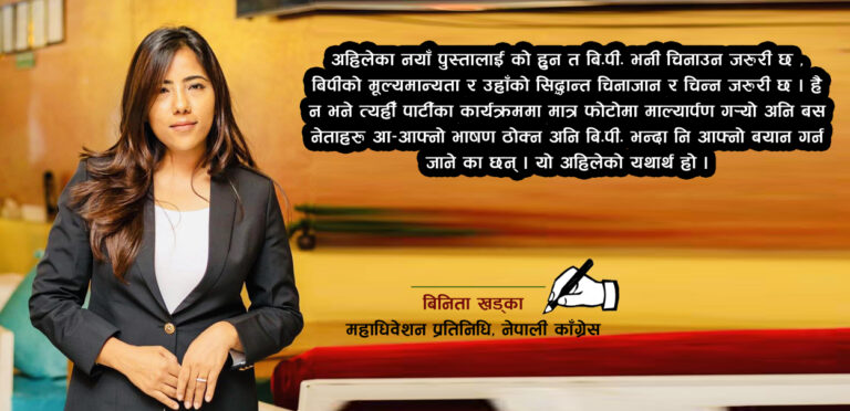 अहिलेका नयाँ पुस्तालाई को हुन त बि.पी. भनी चिनाउन जरुरी छ ,बिपीको मूल्यमान्यता र उहाँको सिद्धान्त चिनाजान र चिन्न जरुरी छ । हैन भने त्यहीँ पार्टीका कार्यक्रममा मात्र फोटोमा माल्यार्पण गर्यो अनि बस नेताहरू आ-आफ्नो भाषण ठोक्न अनि बि.पी. भन्दा नि आफ्नो बयान गर्न जानेका छन् । यो अहिलेको यथार्थ हो । बिपीको मार्गमा हामी हिँड्नु जरुरी छ । बिपीको राजनैतिक धरातललाई टेकेर काँग्रेस बढ्न जरुरी छ । साँच्चै नै भन्दा के अहिलेका नेताहरूमा नयाँ पुस्तालाई दिने ज्ञान छ त ?