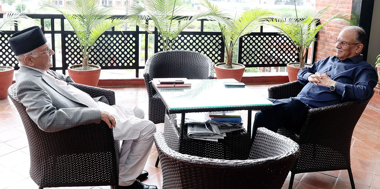 काठमाडौं । नेकपा एमालेका अध्यक्ष केपी शर्मा ओली प्रधानमन्त्री पुष्पकमल दाहाल प्रचण्डलाई भेट्न बालुवाटार पुगेका छन् ।