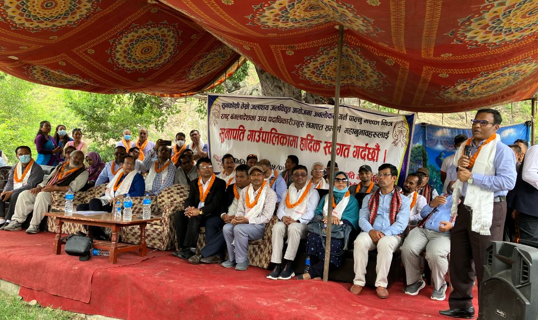 कार्यक्रममा रामेछापका संघीय सांसद श्याम श्रेष्ठ, सुनापति गाउँपालिका अध्यक्ष ठूलाकान्छा तामाङ, स्थानीय राजनीतिक दलका नेताहरूलगायतले प्रभावित क्षेत्रको मुहार फेरिने गरी दुई मुलुकका साझा आयोजनाको रूपमा निर्माण गरिनुपर्ने, निर्माण समय नबढ्ने गरी काम हुनुपर्ने र यसका लागि स्थानीय रूपमा आवश्यक सहयोग तथा सहकार्य गर्न तयार रहेको प्रतिबद्धता जनाए ।