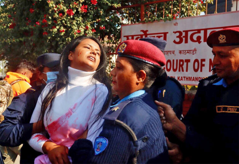 काठमाडौं – महिला हिंसाविरुद्धको १६ दिने अभियान चलिरहेका बेला न्याय माग्न पुगेकी विनु यादव सर्वाेच्च अदालतकै गेटबाट प्रहरीको नियन्त्रणमा परेकी छन् ।