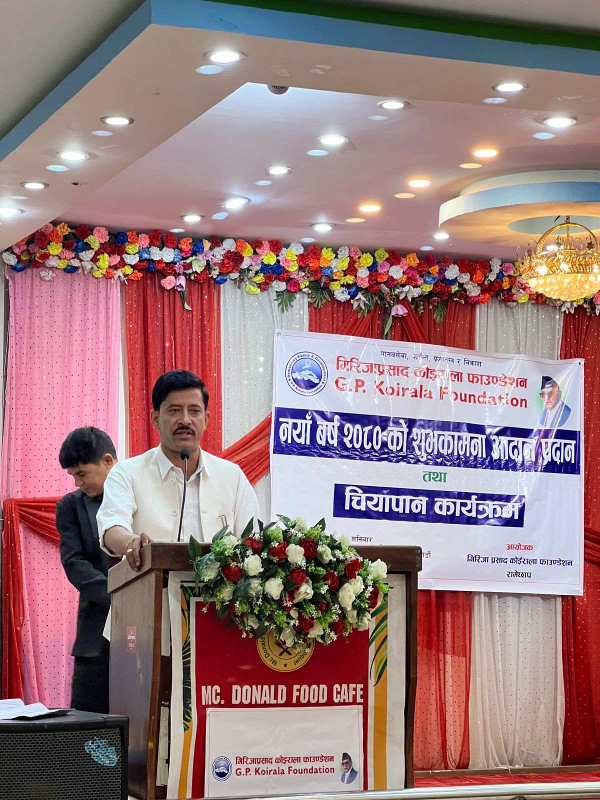 कार्यक्रममा स्वागत गर्दै अध्यक्ष खड्काले पार्टिका नेताको बारेमा अधिबेशनको विषयलाई लिएर नकरात्मक प्रचार गर्ने पार्टिको नेता तथा कार्यकर्ताको प्रचलनले पार्टिलाई ठुलो घाटा भएको भन्दै पार्टिको आन्तरिक बिबाद बाहिर ल्याउन नहुने बताए । खड्काले भने चिया पसलमा बसेर आफ्नो पार्टिको नेताको आलोचना गर्ने बानि हटाउन पर्ने बताए । साथै उनले भने आफुलाई मन नपरेको व्यक्तिले टिकट लिएर आउन बितिकै हराउन लागी पर्ने बानि हटाउन पर्ने भन्दै सबै नेता तथा कार्यकर्ता एक भएर लाग्नु पर्ने बताए । खड्काले भने हामी आज भन्दा अघि जसरी अघि बढे पनी अब बिपि र जिपि कोइरालाको बिचार मनन् गरेर नयाँ सोच नयाँ बिचारको साथ अघि बढ्न पर्ने बताए ।