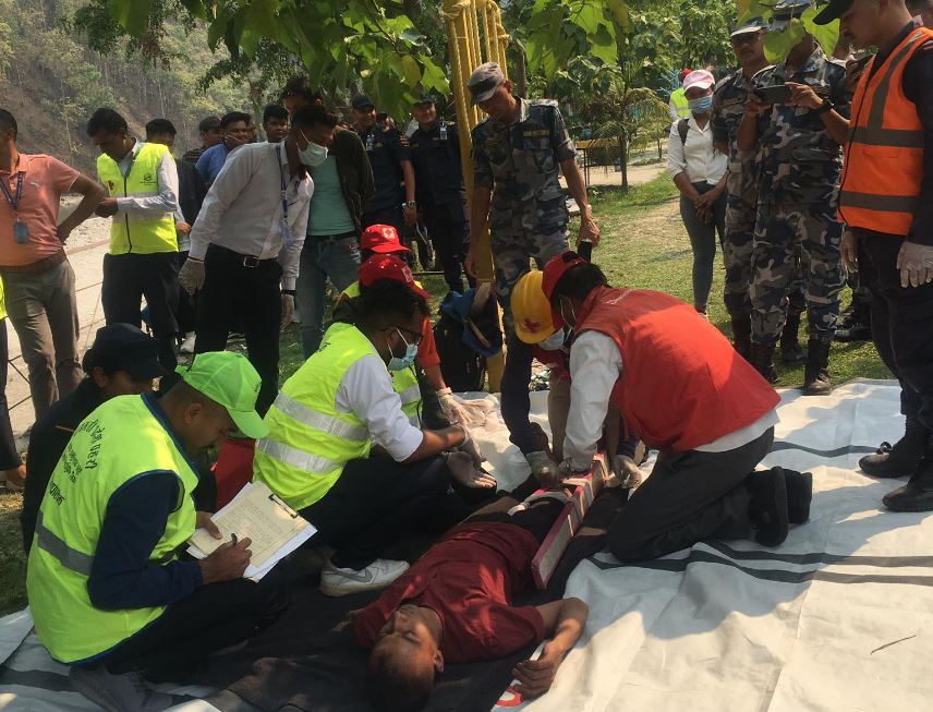 सिन्धु पर्यटन ब्यवसायी संघको सहयोग, जिल्ला विपद ब्यवस्थापन समितिको आयोजना र तीनै वटा सुरक्षा संयन्त्रको सहकार्यमा भएको अभ्यासमा नेपाल रेडक्रस सोसाईटी, स्वास्थय कार्यालय र चौतारा नगरपालिका स्वास्थ्य शाखाले अभ्यासको क्रममा उद्धार गरिएका घाईतेहरुलाई प्राथमिक उपचार तथा अस्पताल सम्म पु¥याउने अभ्यासमा सक्रिय देखिएका थिए ।