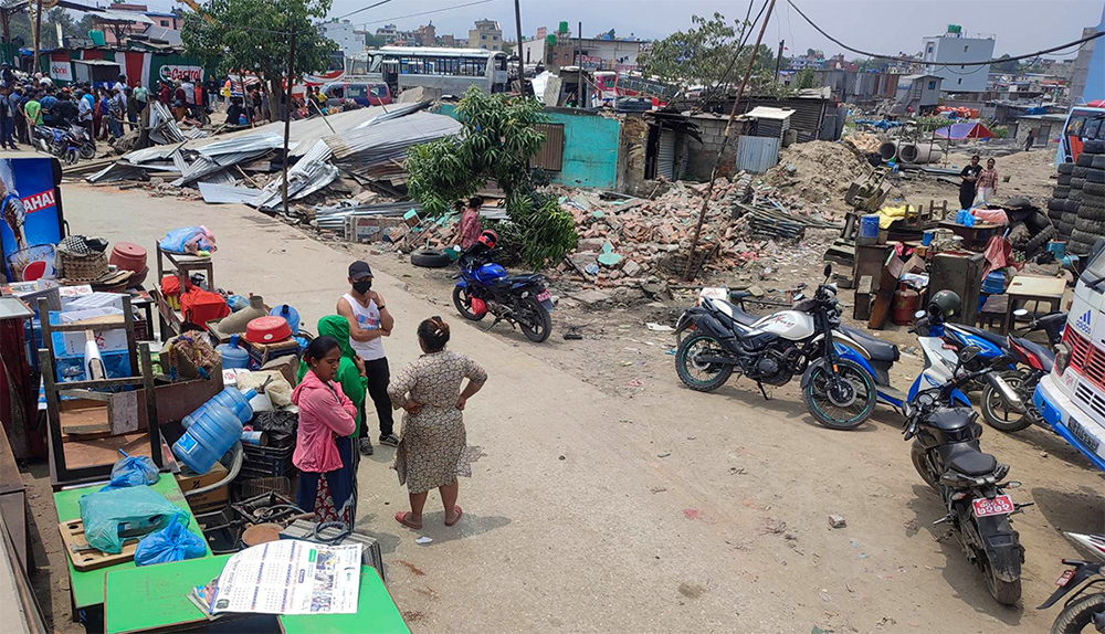काठमाडौं । मध्यपुर ठिमीको मनोहरा पुल क्षेत्रमा अतिक्रमण गरेर बनाइएका संरचनामा काठमाडौं महानगरपालिका अन्तर्गतको मनोहरा जग्गा एकीकरण आयोजनाले डोजर चलाएको छ । आयोजनाले एक वर्षदेखि टहरा हटाउन खोजे पनि आज मात्रै हटाउन सकेको आयोजनाका उपनिर्देशक निर्मलराज बरालले जानकारी दिए ।