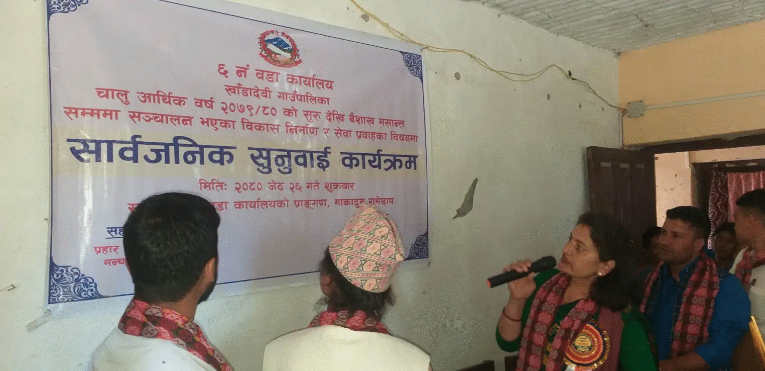 रामेछाप । रामेछापको खाँडादेवी गाउँपालिका–६ ले चालु आर्थिक वर्षमा गरेका विकास निर्माण तथा सेवा प्रवाहको प्रभावकारीता बारे सार्वजनिक सुनुवाइ गरेको छ ।