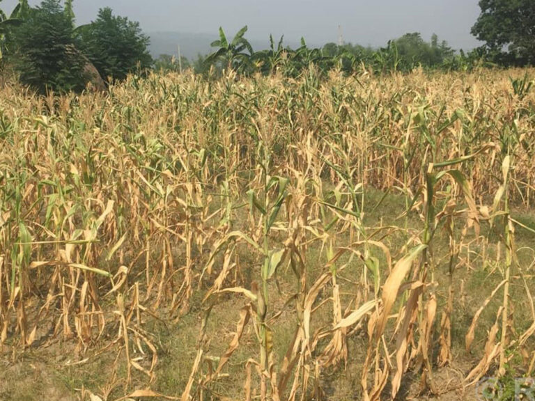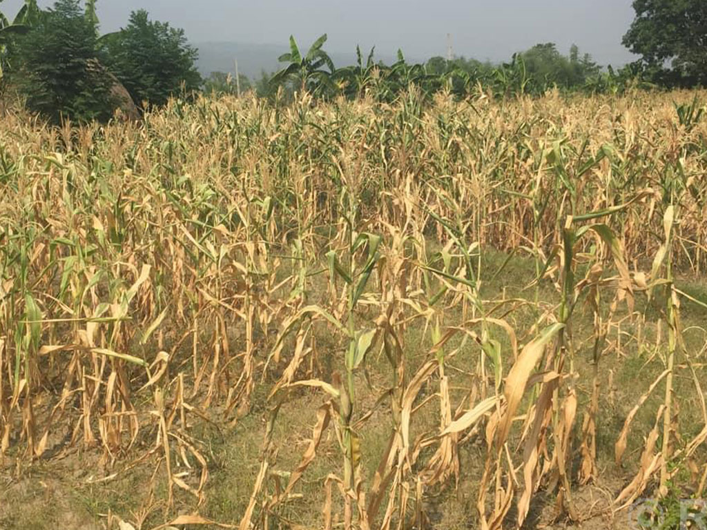 मकैको घोगा लाग्ने र पाक्ने बेलामा बढ्दो तापक्रम र खडेरीले मकैका बोट सुक्न थालेपछि किसान चिन्तित बनेका हुन् ।