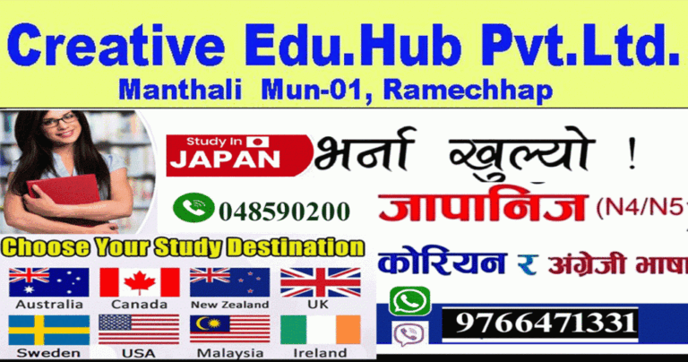 रामेछाप । रामेछाप जिल्लाको सदरमुकाम मन्थलीमा औपचारीक रुपमा जापानी भाषाको पढाई सुरु भएको छ । विहिवार देखि क्रियटिभ एडु हब प्रालिले जिल्लामा जापनिज भाषा सिकाउन थालेको हो
