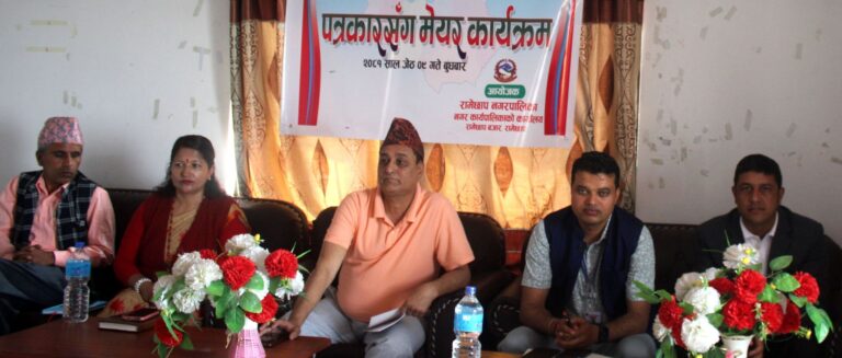रामेछाप । रामेछाप नगरपालिकाले नीति तथा कार्यक्रम निर्माणका लागि पत्रकारसँग मेयर कार्यक्रम सम्पन्न गरेको छ । आर्थिक वर्ष २०८१/८२ को नीति तथा कार्यक्रम निर्माणका लागि विभिन्न सरोकारवाला तथा राजनीतिक दलहरू सँग सुझाव लिई पत्रकारहरूसँग सुझाव लिन कार्यक्रमको आयोजना गरिएको रामेछाप नगरपालिकाका सूचना अधिकारी होम बहादुर प्रष्ट पारे ।