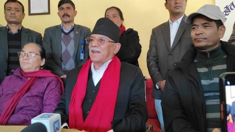 सुर्खेत । प्रमुख प्रतिपक्षी नेकपा माओवादी केन्द्रका अध्यक्ष पुष्पकमल दाहाल ‘प्रचण्ड’ ले सरकारप्रति आफूहरूको कुनै अभिरुचि नभएको बताएका छन् । सुर्खेत विमानस्थलमा आज बोल्दै अध्यक्ष प्रचण्डले सो कुरा बताएका हुन् । उनले वर्तमान सरकार अवैध तरिकाले बनेकाले धेरै टाढा नजानेमा भने आफूहरू प्रष्ट रहेको जिकिर गरे ।