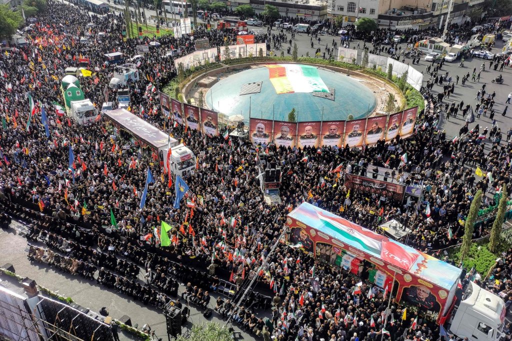 अन्त्येष्टि समारोहमा ‘अमेरिका मुर्दावाद’ र ‘इजरायल मुर्दावाद’ भन्ने नारा लगाउँदै हजारौं नागरिकले अमेरिका र इजरायलको आक्रमणमा ज्यान गुमाएका मृतकको फोटो भएका व्यानर, प्लाकार्ड खिचेको फुटेज प्रसारण गरेको थियो । इरानले १२ दिनको युद्धको क्रममा इजरायलविरुद्ध गरेको प्रतिशोधात्मक क्षेप्यास्त्र आक्रमणलाई संकेत गर्दै लेखिएको ‘बुम, बुम, तेल अभिभ,’ उल्लेख गरिएको ब्यानर लिएर हजारौँ इरानीले मृतकप्रति सम्मानका लागि अन्त्येष्टि समारोहमा सहभागी भएका थिए ।