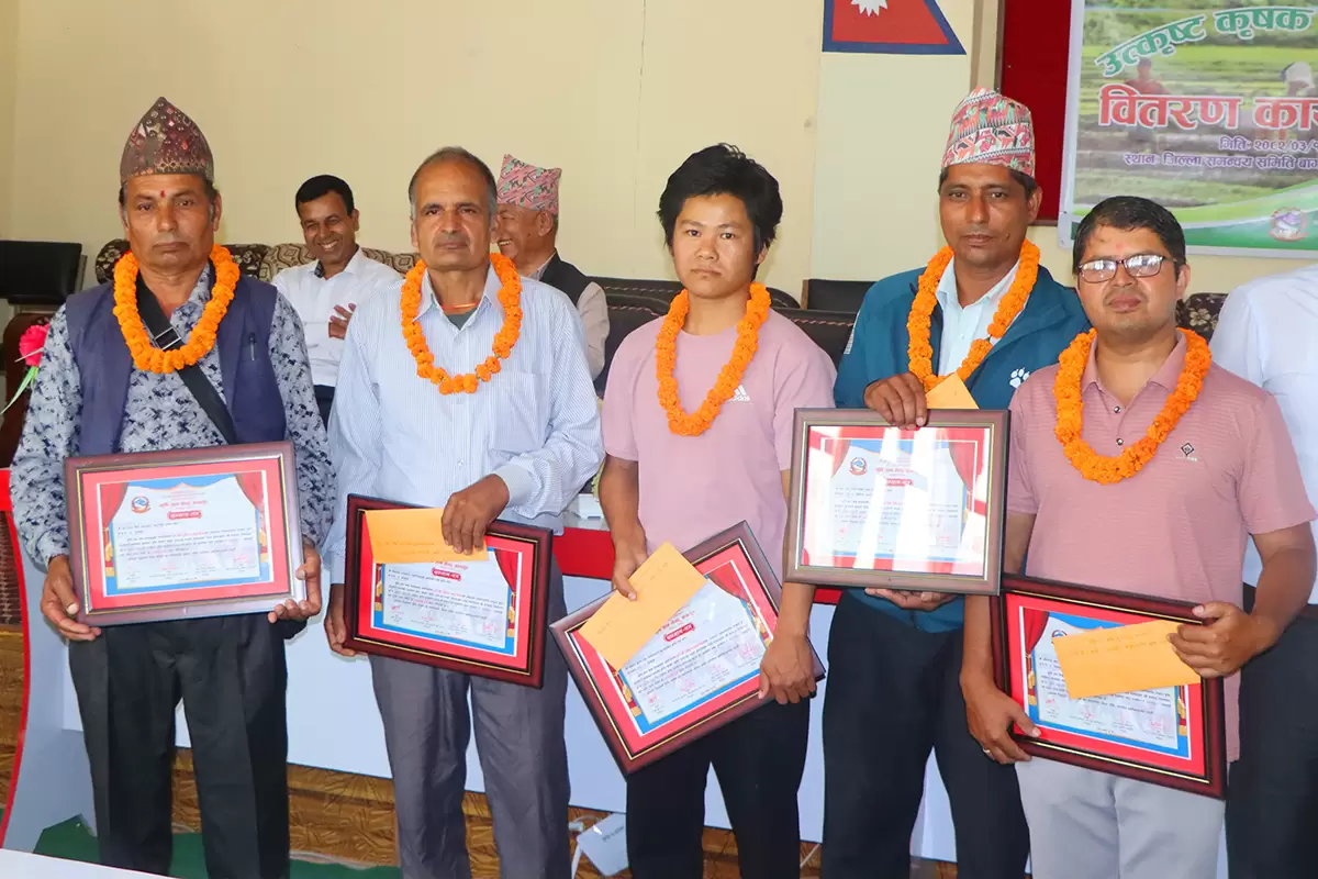 ढोरपाटन । कृषि ज्ञान केन्द्र बागलुङले जिल्लाका उत्कृष्ट पाँच किसानलाई पुरस्कारसहित सम्मान गरेको छ । आइतबार २२औँ राष्ट्रिय धान दिवसका अवसरमा कृषकलाई जनही रु १० हजार र प्रमाणपत्रले सम्मान गरिएको केन्द्रले जनाएको छ ।