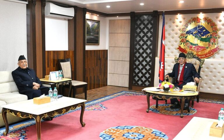 काठमाडौं । नेकपा एमाले अध्यक्ष केपी ओली प्रधानमन्त्री पुष्पकमल दाहालसँगको भेटका लागि बालुवाटार पुगेका छन् ।
