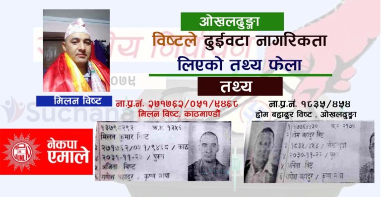 ओखलढुङ्गा जिल्लाको लिखु गाउँपालिका अध्यक्ष पदका उमेदवार (एमालेको तर्फबाट) विष्टले दुईवटा नागरिकता लिएको तथ्य फेला परेको छ ।
