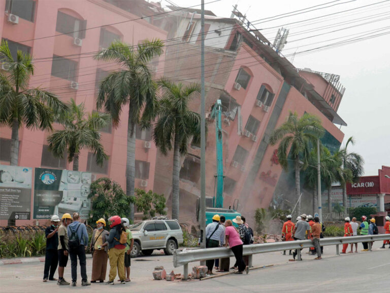 वर्षौँको लडाइँले म्यान्मारको अर्थव्यवस्था र पूर्वाधार तहसनहस पारेसँगै भूकम्पपछिको राहत प्रदान गर्न अन्तर्राष्ट्रिय प्रयासहरूलाई उल्लेखनीय रूपमा बाधा पुर्याएको छ । चीन, रूस र भारत उद्धार टोलीहरू म्यान्मार पठाएर बाँचेकाहरूलाई पत्ता लगाउन मद्दत गर्ने पहिलो देशहरू मध्ये थिए ।